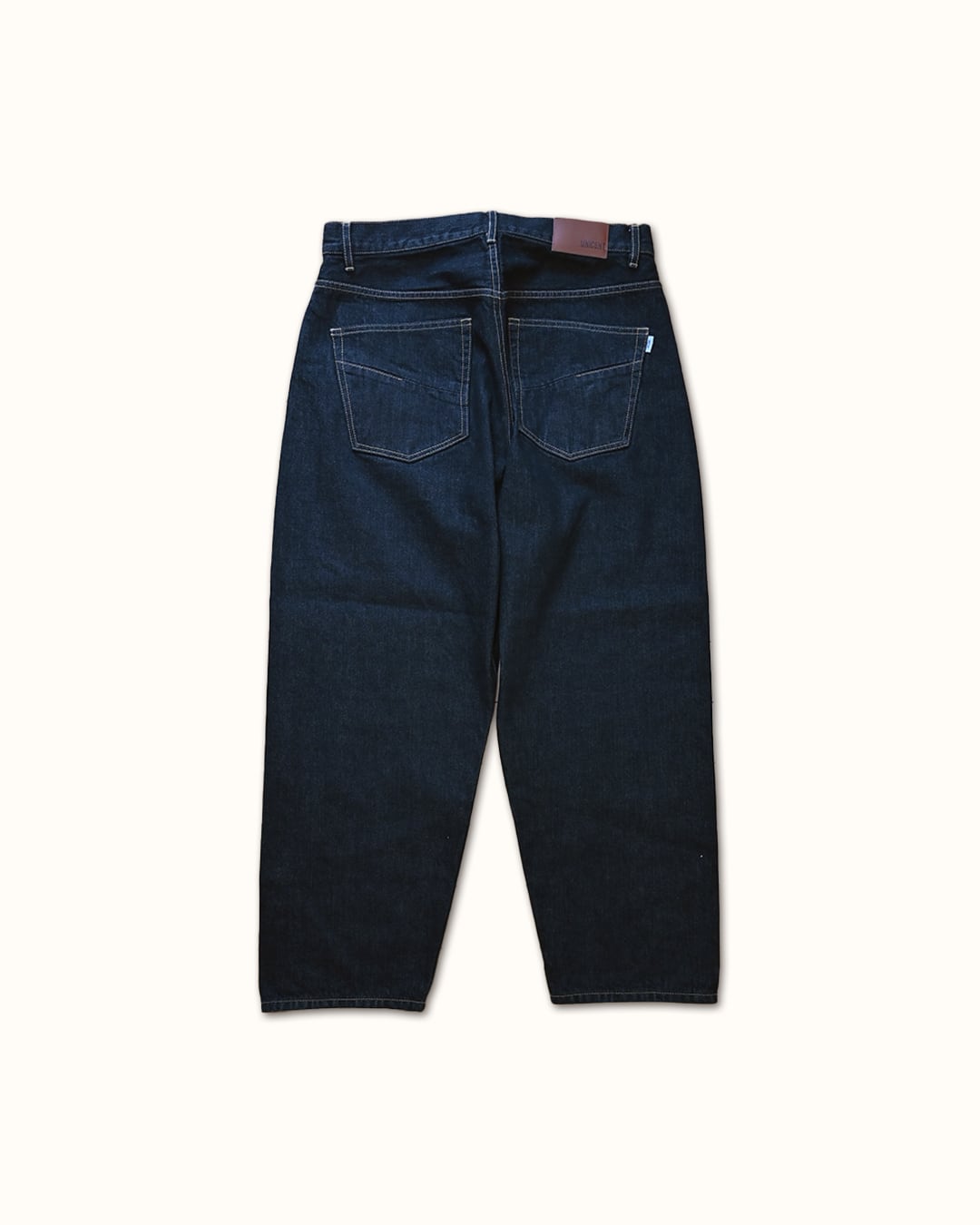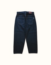 14.5ozの赤耳付き厚手デニムを使用し、ワンウォッシュ加工を施したデニムパンツ。